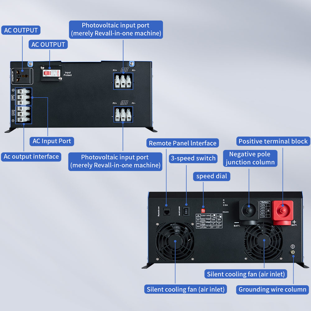 | Birləşdirici gərginlik diapazonu (qurğuşun turşusu batareyası) | 70A-12V / 24V / 48V / 60V / 72v / 1920W / 1920W / 3840W / 4800W / 5760W | ||||||